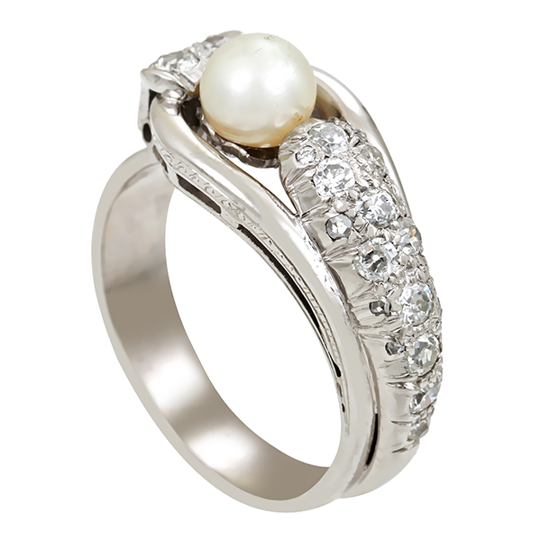 Ring, 14K, Weißgold, Perlen, Diamanten