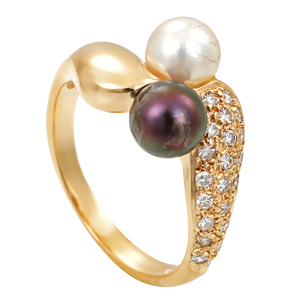 Ring, 14K, Gelbgold, Perlen, Diamanten 0,21 ct