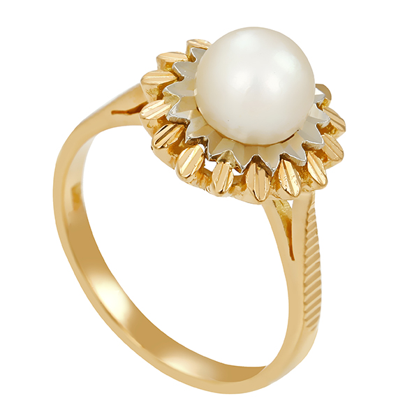 Ring, 18K, Gelb-/Weißgold, Perle