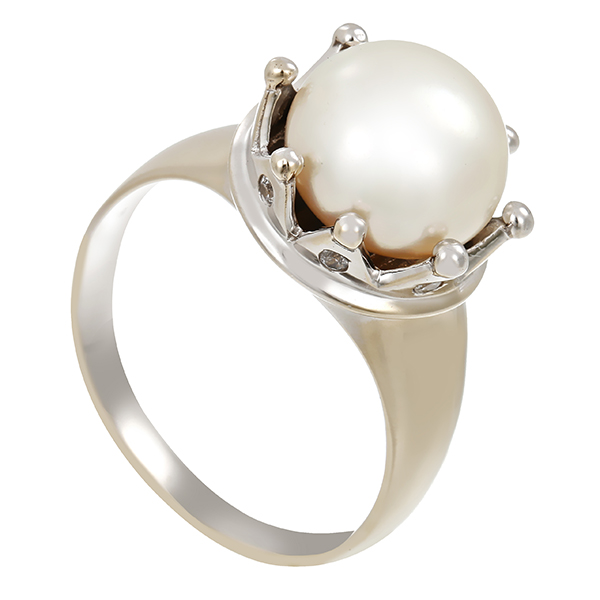 Ring, 14K, Weißgold, Perle, Zirkonia