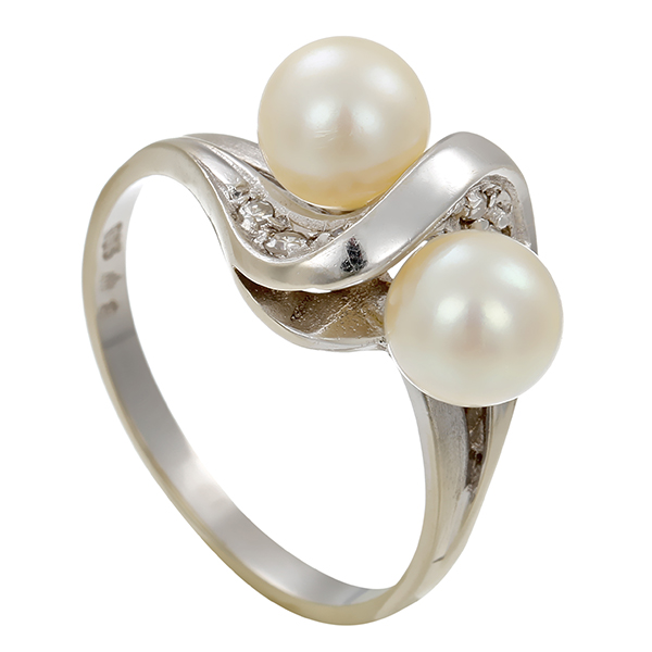 Ring, 14K, Weißgold, Perlen, Diamanten