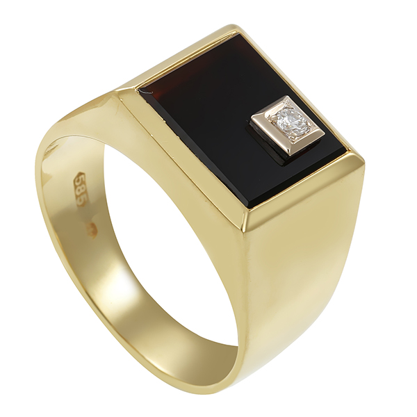Herrenring, 14K, Gelbgold, Onyx, Brillant