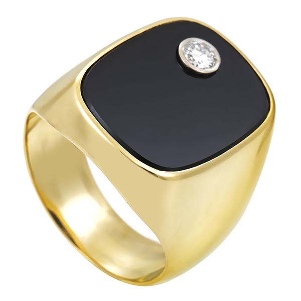Herrenring, 14K, Gelbgold, Onyx, Brillant