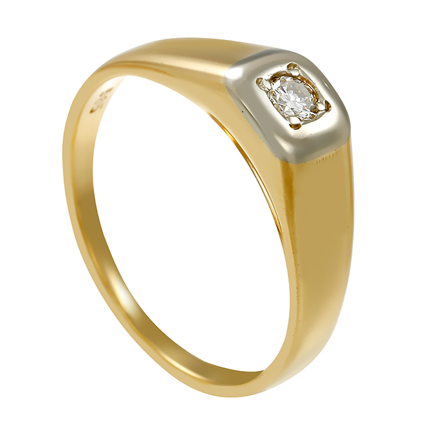 Herrenring, 14K, Gelb-/Weißgold, Brillant 0,13 ct