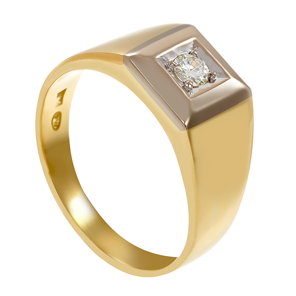 Herrenring, 14K, Gelb-/Weißgold, Brillant 0,20 ct