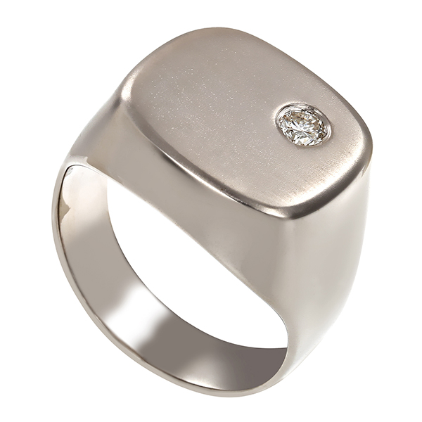 Herrenring, 14K, Weißgold, Brillant