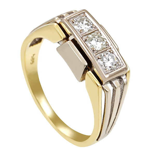 Herrenring, 14K, Gelb-/Weißgold, Brillanten