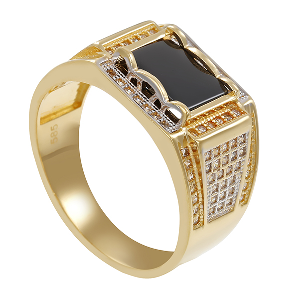 Herrenring, 14K, Gelb-/Weißgold, Zirkonia, Onyx, U65