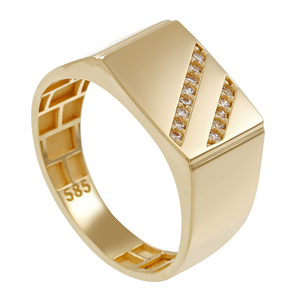 Herrenring, 14K, Gelbgold, Zirkonia, U65