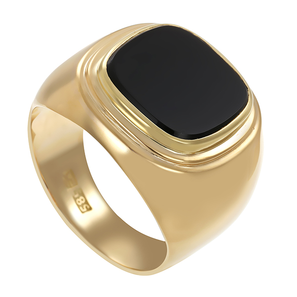 Herrenring, 14K, Gelbgold, Onyx
