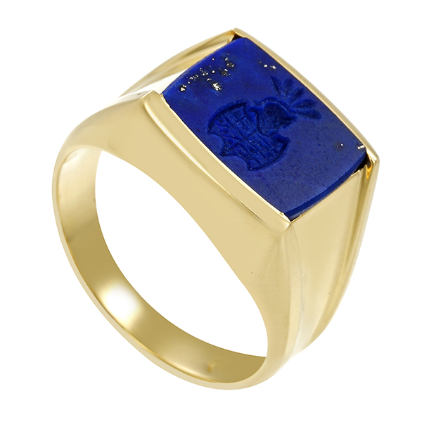 Herrenring, 14K, Gelbgold, Lapis, Wappen